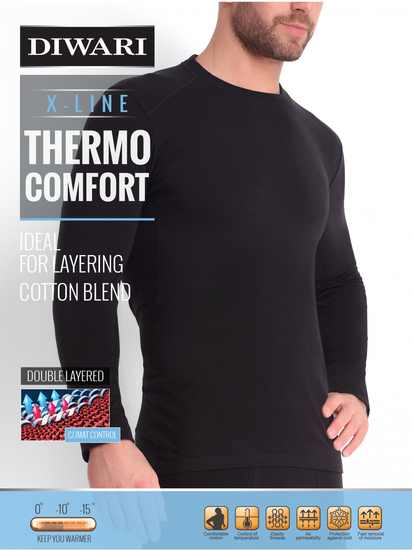 Нижнее тонкое термобелье DiWaRi Thermo Comfort, изготовленное из легкого дышащего материала,преднозначено для повседневной носки в холодную погоду. В составе полотнасодержится Acrilliс - современный высокотехнологичный заменитель шерсти, способствующий поддержанию комфортной температуры тела в условиях пониженных температур.