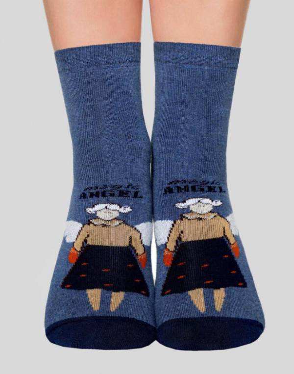 Комфортные теплые махровые женские носки из хлопка, без вывязанной пятки, на стопе антискользящее покрытие. С рисунками "