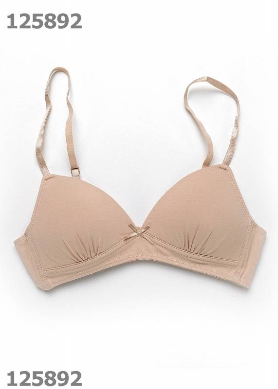 Комфортная модель анатомического кроя без каркасов. Бюстгальтер выполнен из эластичного хлопкового полотна. Тонкая формованная чашка внутри продублирована полотном из 100% хлопка. Бретели регулируемые.