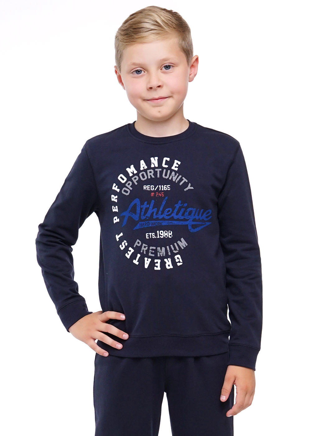Удобный в эксплуатации свитшот из футера.Манжеты и обтачка из эластичного кашкорсе с отстрочкой. Впереди тематичесий принт