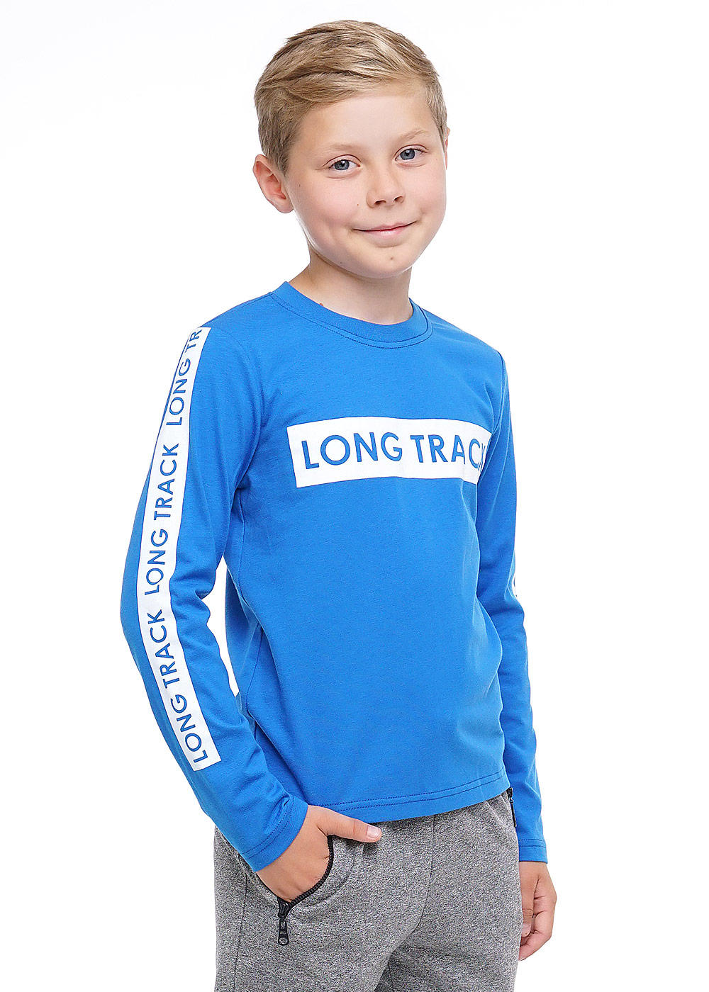 Базовый джемпер на хлопке. Удлиненная спинка впереди и по рукаву одноцветный принт.
