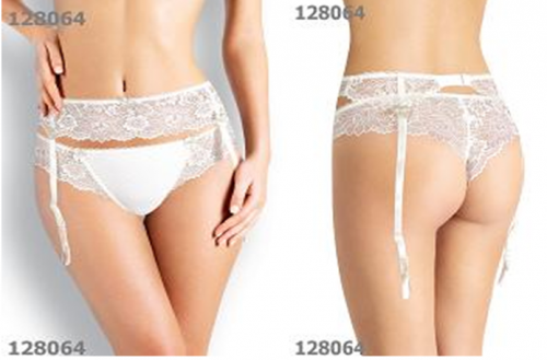 Пояс для чулок выполнен из эффектного кружева с цветочным орнаментом.
