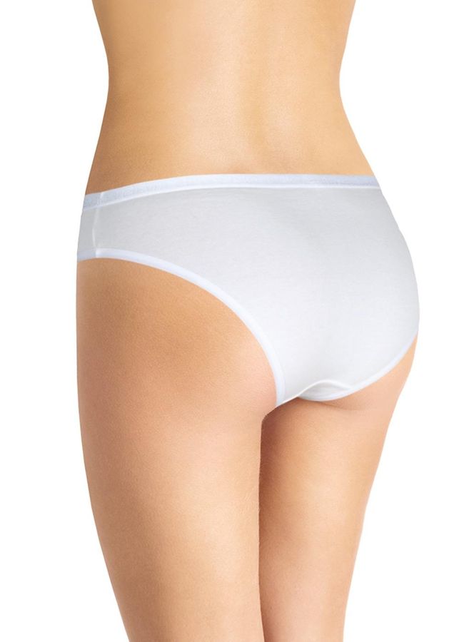 Трусы бикини из однотонного трикотажного полотна, по талии обработаны резинкой жаккард ,по ноге -резинкой полуокантовкой